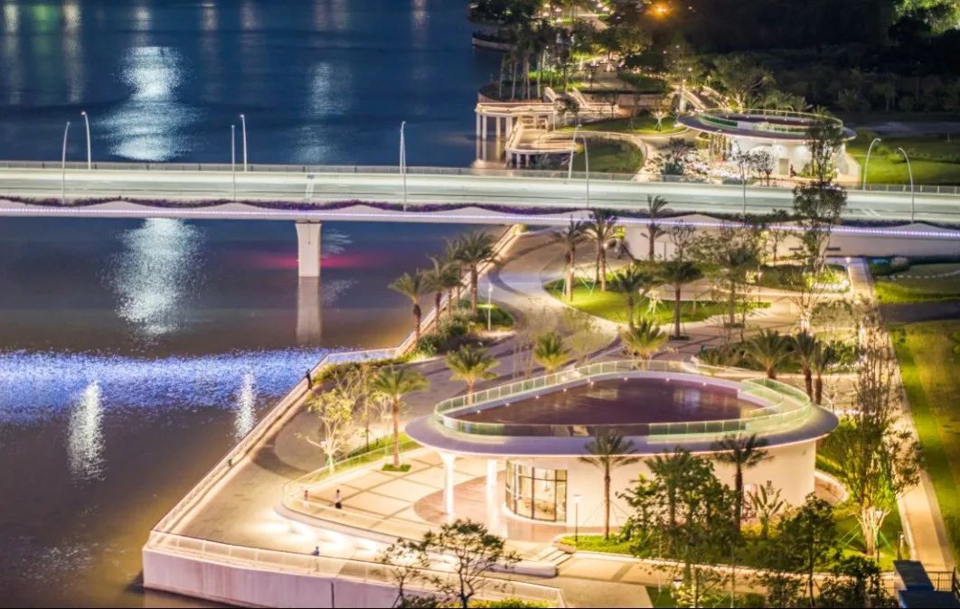 當夜幕降臨,橫琴天沐琴臺絕美的夜景更加美輪美奐,震撼迷人,璀璨的燈光如同繁星般點綴在這把“古琴”之上,與周邊高樓大廈的霓虹燈共同組成一幅流動畫卷。